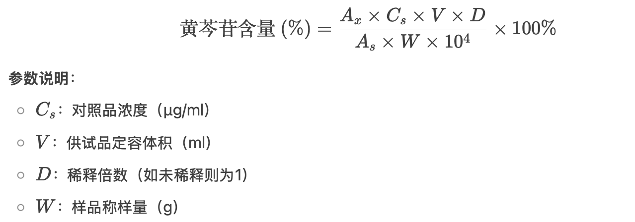 简单成分:优先采用直接测定法(如黄芩苷、丹酚酸B),强化溶剂空白与系统适用性控制;